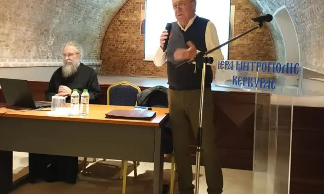 Τον Σεβασμιώτατο Μητροπολίτη Κερκύρας εκπροσώπησε ο Αρχιμ. Σεραφείμ Λινοσπόρης, ιεροκήρυκας της Ιεράς Μητροπόλεως, και πνευματικός σύμβουλος της Ενώσεως Χριστιανών Επιστημόνων.