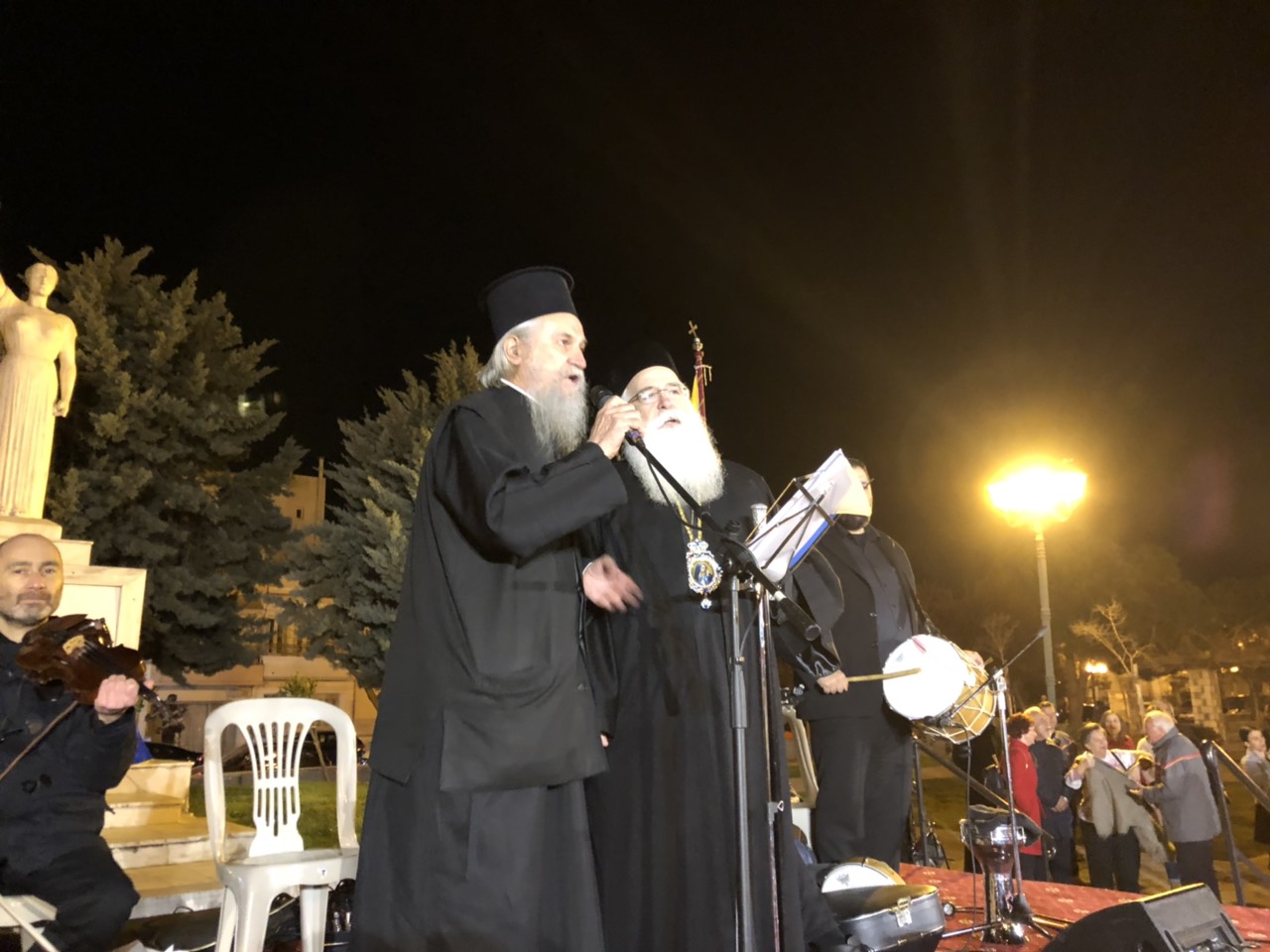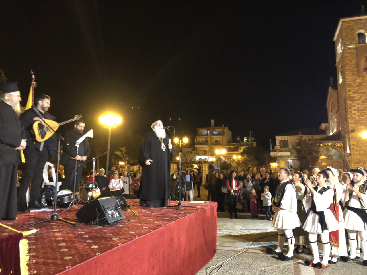 Την εκδήλωση έκλεισε ο Σεβ. Μητροπολίτης κ. Ιγνάτιος, ο οποίος ευχαρίστησε ιδιαίτερα τον π. Χρήστο σημειώνοντας χαρακτηριστικά: «…Όσο υπάρχουν άνθρωποι σαν τον παπά-Χρήστο, η Ελλάδα δεν πεθαίνει. Η Ελλάδα θα ζει…». Ο Σεβασμιώτατος έκλεισε την ομιλία του απευθυνόμενος προς το πολυπληθές κοινό, που αψήφησε και το βραδινό κρυαδάκι του Μαρτίου, εξαίροντας τη σημασία που έχει να αισθανόμαστε στις ημέρες μας Ελεύθεροι πνευματικά και ψυχικά ως Χριστιανοί Ορθόδοξοι. Χαρακτηριστικά ανέφερε: «Το μεγάλο ερώτημα παραμένει. Πόσο ελεύθεροι είμαστε σήμερα; Ας το σκεφτούμε καλά, γιατί πρέπει να κρατήσουμε την ελευθερία, που δεν είναι μόνο τα σύνορά μας, είναι η πνευματική μας ελευθερία, είναι η ψυχική μας ελευθερία, είναι η ελευθερία να είμαστε Ορθόδοξοι και Έλληνες. Χρόνια Πολλά και Ευλογημένα σε όλους».