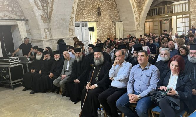 Με επιτυχία πραγματοποιήθηκε, το πρωί της Πέμπτης, 28ης Μαρτίου 2024, στο Ωδείο Ρεθύμνου (Αίθουσα «Παντελής Πρεβελάκης»), εκδήλωση της Ιεράς Μητροπόλεως Ρεθύμνης και Αυλοποτάμου και της Διεύθυνσης Δευτεροβάθμιας Εκπαίδευσης Ρεθύμνου, στο πλαίσιο των επετειακών εορτασμών για τη συμπλήρωση 200 ετών από τη μαρτυρική τελείωση των Αγίων Τεσσάρων Νεομαρτύρων Γεωργίου, Αγγελή, Μανουήλ και Νικολάου, των εν Ρεθύμνη μαρτυρησάντων.