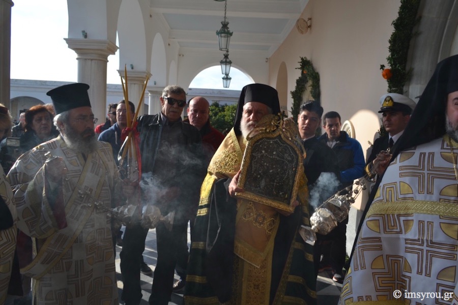 Το μεσήμερι, στις 15.00, πραγματοποιήθηκε στην Τήνο η λιτανευτική πομπή, από τον Πανίερο Ναό στον Ναό της Ευρέσεως, της αγίας Εικόνος λιτανευομένης διά χειρών του Σεβ. κ. Δωροθέου Β’ και δύο μαθητών του Γυμνασίου Τήνου.