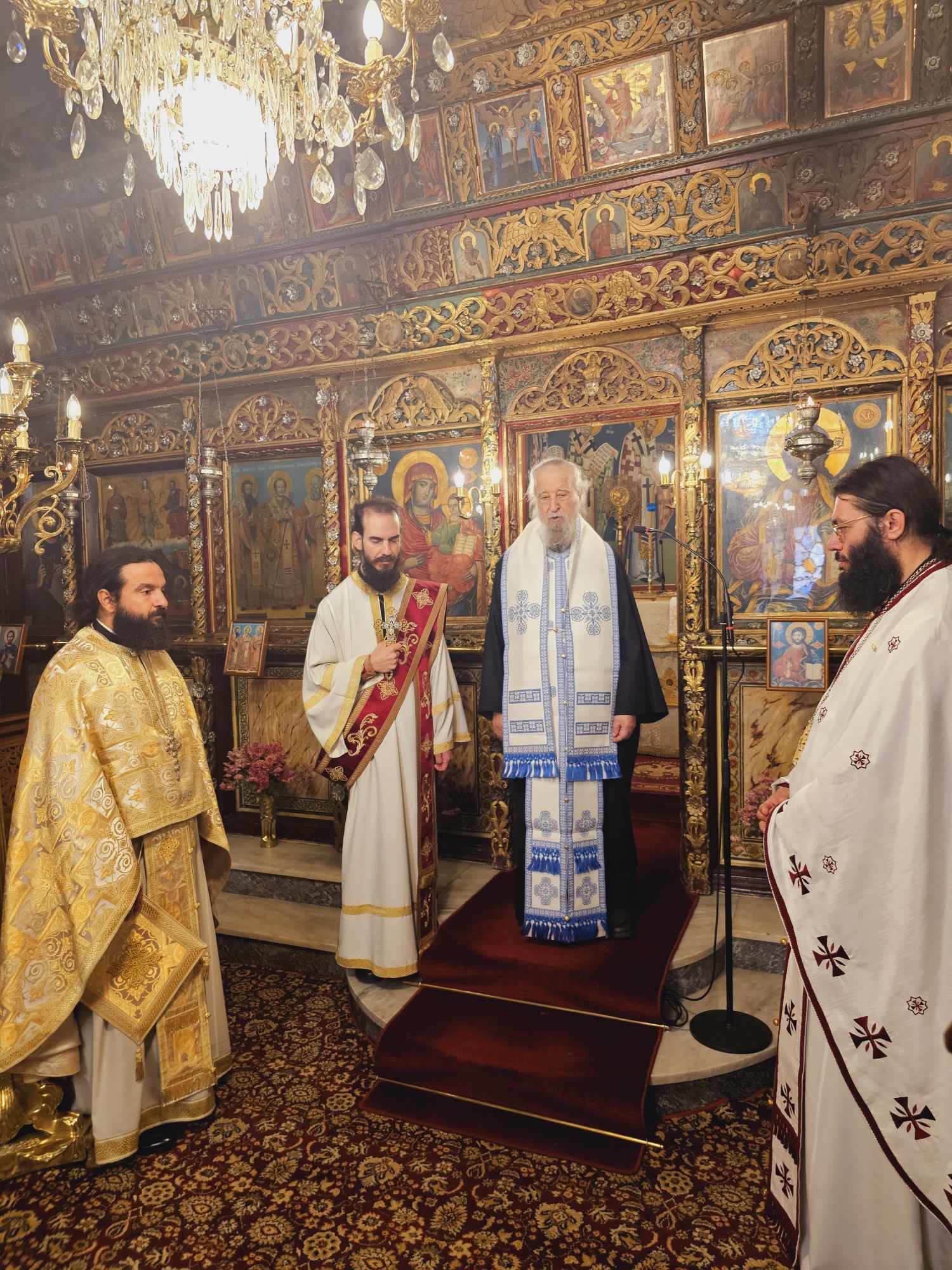 Πρό της απολύσεως της Θείας Ευχαριστίας τον Σεβασμιώτατο Μητροπολίτη κ. Σεραφείμ προσφώνησε εξ ονόματος κλήρου και λαού ο Πρωτοσύγκελλος της Ιεράς Μητροπόλεως Πανοσ Αρχιμ Νικόδημος Πόγκας εκφράζοντας τις θερμές ευχαριστίες και τον σεβασμό προς το πρόσωπου του Σεπτού Ποιμενάρχου στο πηδάλιο της Ιεράς Μητροπόλεως για την πολυετή καρποφόρο και ποιμσντική μέριμνα του Σεπτού Επισκόπου προς όλο το χριστεπώνυμο πλήρωμα της Ιεράς Μητροπόλεως.