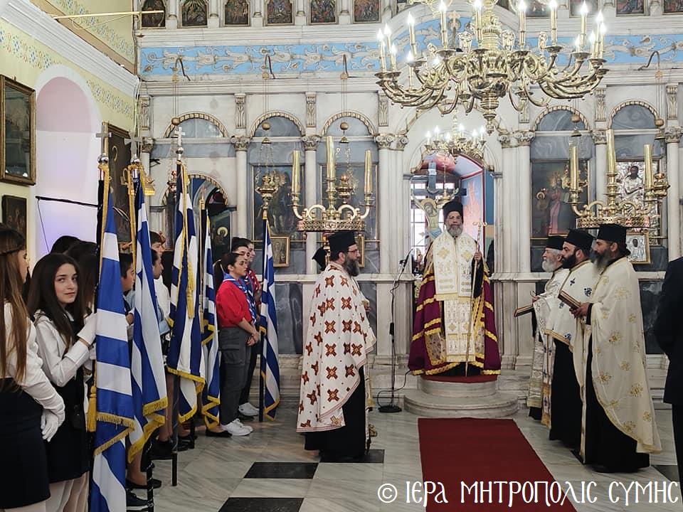 Στήν Σύμη, τήν ἕδρα τῆς Ἱ. Μητροπόλεως, ὥρα 10:00 ἐτελέσθη πανηγυρική Δοξολογία στόν Μητροπολιτικό Ἱ. Ναό τοῦ Τιμίου Προδρόμου χοροστατοῦντος τοῦ Σεβ. Μητροπολίτου μας κ. Χρυσοστόμου, πλαισιουμένου ἐκ τοῦ ἱ. Κλήρου τῆς Σύμης.