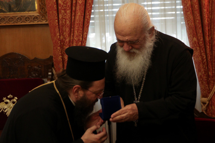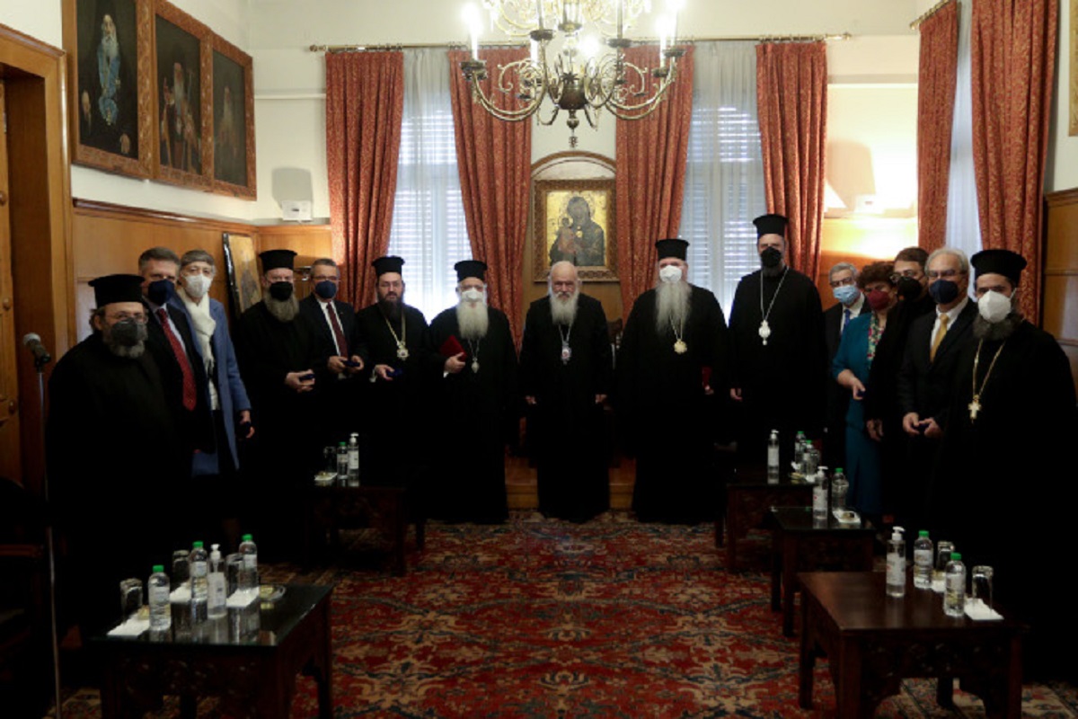 Τα μέλη της Ειδικής Συνοδικής Επιτροπής Πολιτιστικής Ταυτότητος και της Επιστημονικής Επιτροπής για τα 10 Συνέδρια τίμησε σήμερα, Δευτέρα 21 Μαρτίου, ο Αρχιεπίσκοπος Αθηνών και πάσης Ελλάδος κ. Ιερώνυμος επιδίδοντας το αναμνηστικό μετάλλιο για τα 200 χρόνια από την Ελληνική Επανάσταση.