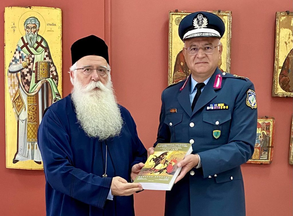 Ο Μητροπολίτης ευχαρίστησε για την ευγενική προσφορά του πολύτιμου ιστορικού έργου, που εκδόθηκε με την ευκαιρία της επετείου των 200 ετών από την Ελληνική Επανάσταση, και ευχήθηκε ολοθύμως στον κ. Ταξίαρχο για την προαγωγή του έργου της ΕΛ.ΑΣ. επ’ ωφελεία του κοινωνικού συνόλου.
