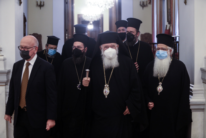Ο Αρχιεπίσκοπος συνοδευόταν από τον πρόεδρο της Ειδικής Συνοδικής Επιτροπής Πολιτιστικής Ταυτότητος, Μητροπολίτη Δημητριάδος και Αλμυρού κ. Ιγνάτιο, τον μέχρι πρότινος Γραμματέα της Επιτροπής, Μητροπολίτη Κιλκισίου κ. Βαρθολομαίο, τον Αρχιγραμματέα της Ιεράς Συνόδου της Εκκλησίας της Ελλάδος, Επίσκοπο Ωρεών κ. Φιλόθεο, τον Γραμματέα της Επιτροπής Αρχιμανδρίτη Δαμασκηνό Πετράκο, τον πρόεδρο της Ειδικής Συνοδικής Επιτροπής επί της Ακαδημίας Εκκλησιαστικών Τεχνών, Πρωτοπρεσβύτερο Θωμά Συνοδινό και τον Γραμματέα της Επιτροπής Αρχιμανδρίτη Αθηναγόρα Σουπουρτζή, ενώ στην τελετή παρέστησαν συνεργάτες της ΠτΔ.