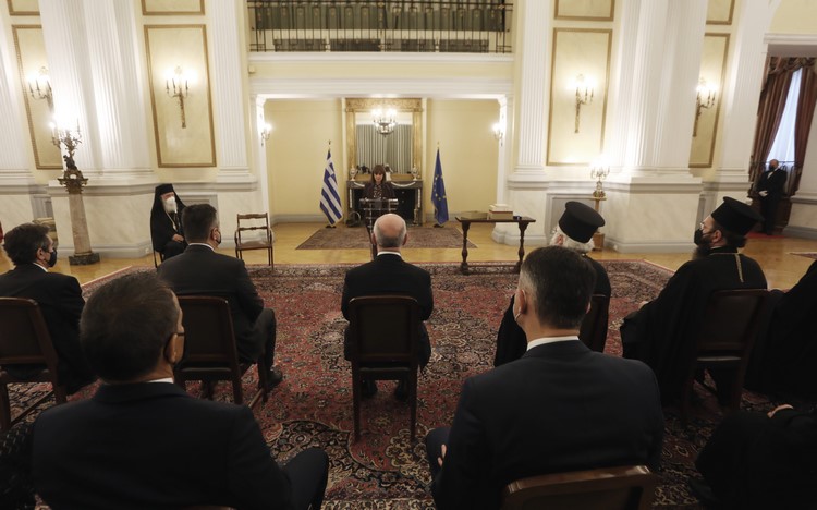 Μετά την παραλαβή των τόμων και του Μεταλλίου η ΠτΔ κ. Κατερίνα Σακελλαροπούλου, αφού ευχαρίστησε θερμά, αλλά και συνεχάρη για αυτήν την ιδιαίτερα αξιοθαύμαστη πρωτοβουλία, τόνισε: «Για την υλοποίηση αυτής της προσπάθειας συγκεντρώσατε, Μακαριώτατε, ερευνητές, πανεπιστημιακούς δασκάλους, συγγραφείς ανοιχτούς στον διάλογο, αφού μόνον αυτός προάγει την επιστήμη και τον στοχασμό, αποτελώντας κινητήρια δύναμη για την εξέλιξή τους. Στους δέκα αυτούς Τόμους διαγράφεται η διανοητική διεργασία, μέσω της οποίας οι εισηγητές αναπαρέστησαν τον τρόπο με τον οποίο ενεργούσαν και σκέφτονταν οι άνθρωποι της εποχής την οποία εξετάζουν, καθώς και τον τρόπο σκέψης των λίγων που δημιούργησαν τις πηγές στις οποίες ανατρέχουν. Αναδεικνύεται ο διαρκής έλεγχος, στον οποίο οι συντάκτες υπέβαλαν το παρελθόν, θέτοντας ανανεωμένα και εμπλουτισμένα ερωτήματα που μας επιτρέπουν να κατανοήσουμε τις δυνάμεις οι οποίες κατέστησαν τον τόπο και την κοινωνία μας αυτό που είναι σήμερα. Κυρίως όμως το πόνημα διαπνέεται από νηφαλιότητα και αίσθημα ευθύνης απέναντι στον παιδευτικό ρόλο που διαδραμάτισε ιστορικά η Εκκλησία μας και τον οποίο συνεχίζει να διαδραματίζει».