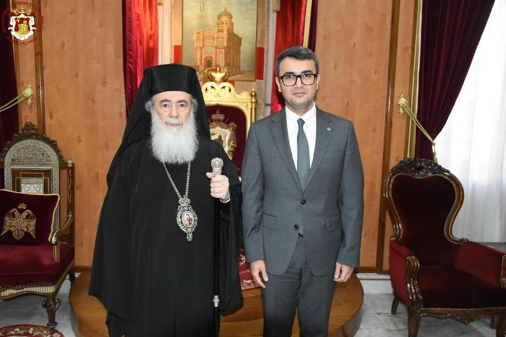 - Τὸν κ. Taleh Nazarli, Consul of Arzerbaijan Embassy καὶ τὸν κ. Ravan Hasanov, Executive Director of the Bacu International Multiculturalism Center, ἐκπροσώπους τοῦ κράτους τοῦ Ἀζερμπαϊτζάν, οἱ ὁποῖοι συνεχάρησαν Αὐτὸν διά τὴν ποιμαντικὴν καὶ πολυπολυτισμικήν δραστηριότητα Αὐτοῦ εἰς τὴν διασφάλισιν τοῦ καθεστῶτος τῶν Ἁγίων Τόπων καὶ προσεκάλεσαν Αὐτὸν, ἵνα ἐν καιρῷ εὐθέτῳ ἐπισκεφθῇ τὸ κράτος αὐτῶν, τὸ ὁποῖον διαφυλάσσει τὴν Μουσουλμανικὴν ἀλλὰ καὶ τὴν Χριστιανικὴν κληρονομίαν.
