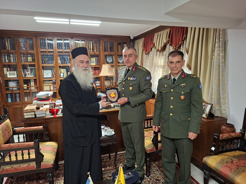 Στην συνέχεια, ο Σεβασμιώτατος συναντήθηκε με τον Ανώτατο Διοικητή Φρουράς Κορίνθου και Διοικητή της Σχολής Μηχανικού Λουτρακίου, Συνταγματάρχη Μηχανικού κ. Νικόλαο Κορίτση και τον Ταγματάρχη Μηχανικού κ. Αχιλλέα Μπούτσικα. Ο Σεβασμιώτατος τους ευχαρίστησε για την, επί σειρά ετών, αγαστή συνεργασία της Ι. Μητροπόλεώς μας με το Στράτευμα αλλά και με την Σχολή Μηχανικού ειδικότερα, την οποία ευελπιστεί να συνεχιστεί απρόσκοπτα.
