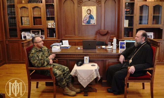 Την Παρασκευή 19 Σεπτεμβρίου, ο Μητροπολίτης κ. Φιλόθεος, δέχθηκε στο γραφείο του, τον Διοικητή του Γ´ Σώματος Στρατού ΑΝΤΓΟ κ. Αθανάσιο Γαρίνη ο οποίος συνοδευόταν από τον π. Ιωάννη Καραγιάννη (ΣΙ) και εφημέριο του Στρατιωτικού Ιερού Ναού αγίων Κωνσταντίνου και Ελένης.