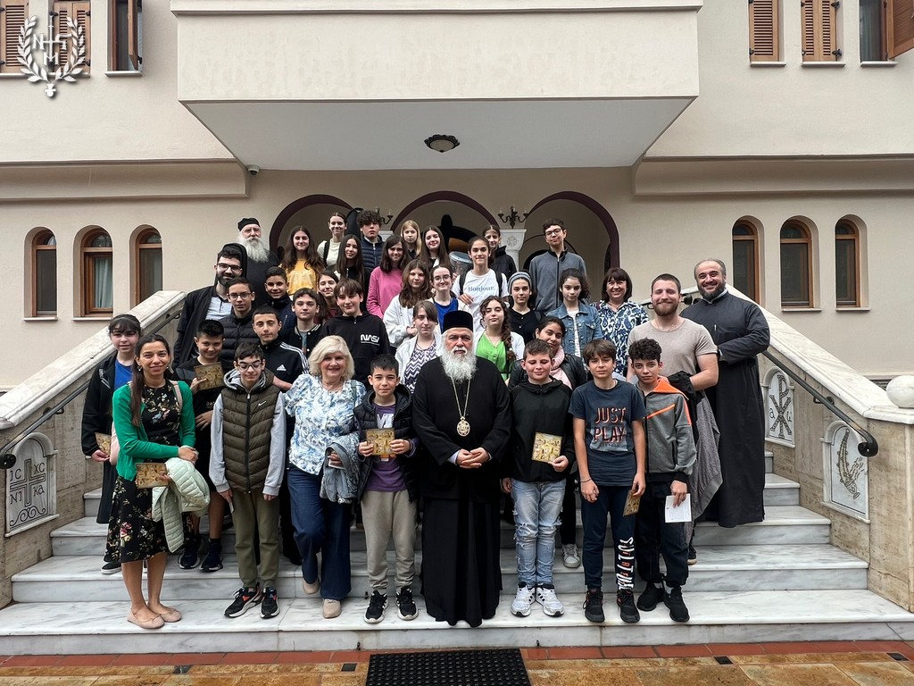 Οι μαθητές, απέδωσαν, με τη συνοδεία οργάνων, παραδοσιακά τραγούδια, ενώ δώρισαν στον Σεβασμιώτατο, μία χειροποίητη εικόνα.