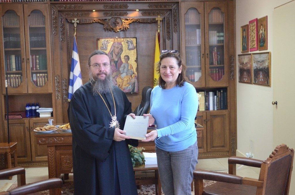 Στη συνέχεια ο Σεβασμιώτατος κ. Δαμασκηνός δέχθηκε στο Γραφείο του την επίσκεψη της κ. Ολυμπίας Βικάτου, Προϊσταμένης της Εφορεία Αρχαιοτήτων Αιτωλοακαρνανίας και Λευκάδος. Κατά τη συζήτηση η κ. Βικάτου ενημέρωσε τον Σεβασμιώτατο για διάφορα θέματα και αποφασίστηκαν τα εξής: