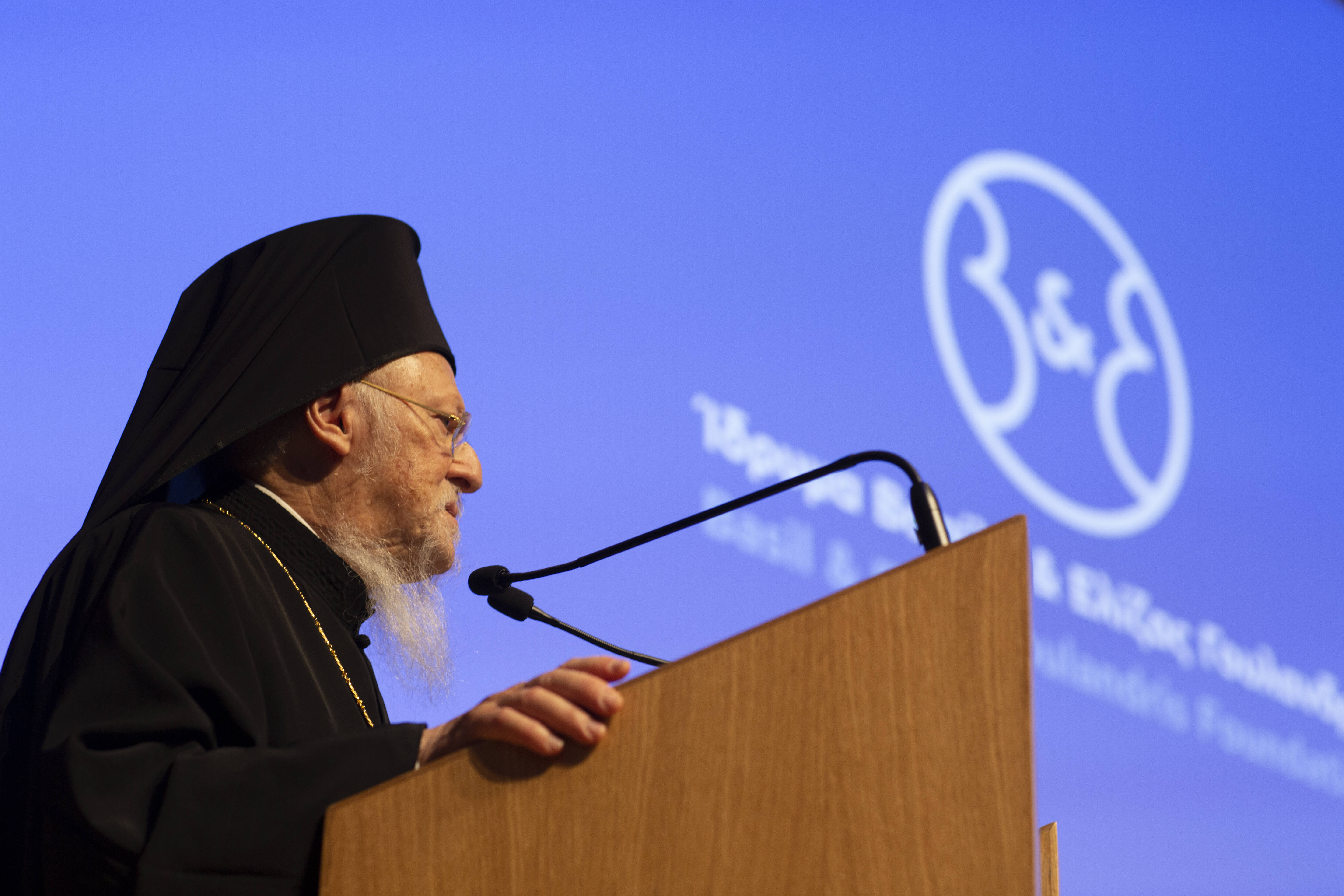 Κατά την προσφώνησή του, ο Οικουμενικός Πατριάρχης κ.κ. Βαρθολομαίος τόνισε τη στενή σχέση της Ορθοδοξίας με την τέχνη και ανέφερε, μεταξύ άλλων: «Παιδιόθεν μας ήγγιζεν η τέχνη, την οποίαν, μαζί με την πίστιν εις τον Θεόν εθεωρούσαμεν οδοδείκτην προς το βάθος και την αλήθειαν των πραγμάτων. […] Είναι πολύ σημαντικόν ότι το Μουσείον Νεώτερης και Σύγχρονης Τέχνης [του Ιδρύματος Β&Ε Γουλανδρή] έχει στόχον να βοηθεί τους ανθρώπους, ανεξαρτήτως ηλικίας, μορφώσεως και κοινωνικής τάξεως να αποκτούν πρόβασιν εις την τέχνην, να τη «διαβάζουν», να υφίστανται δι’αυτής την «καλήν αλλοίωσιν».