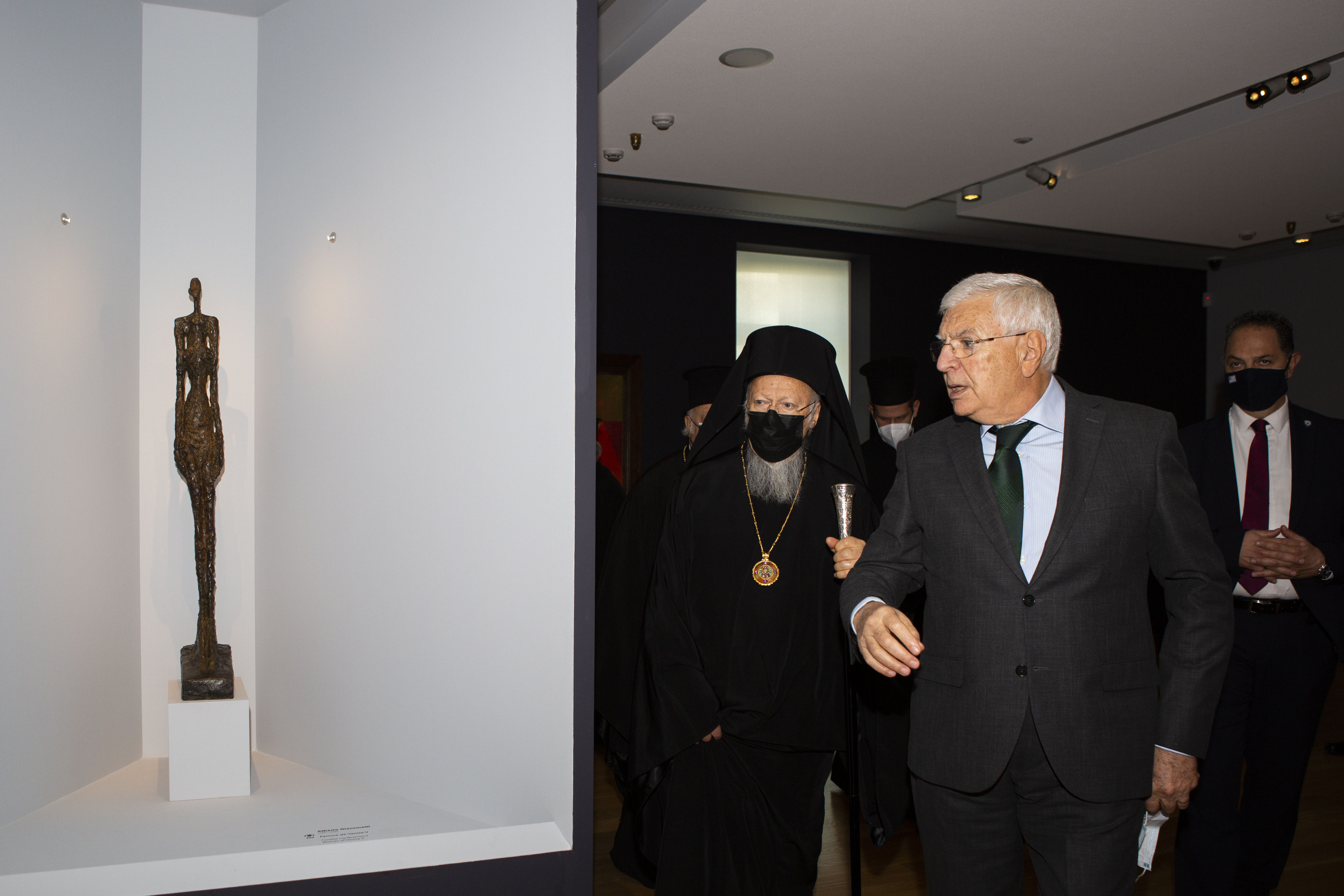 Τον Πατριάρχη υποδέχτηκαν η Πρόεδρος του Δ.Σ. του Ιδρύματος Β&Ε Γουλανδρή κυρία Fleurette Καραδόντη και ο Γενικός Διευθυντής κ. Κυριάκος Κουτσομάλλης, παρουσία του Διοικητικού Συμβουλίου. Στη συνέχεια, ο κ. Κουτσομάλλης τον ξενάγησε στις αίθουσες της μόνιμης Συλλογής του Ιδρύματος .