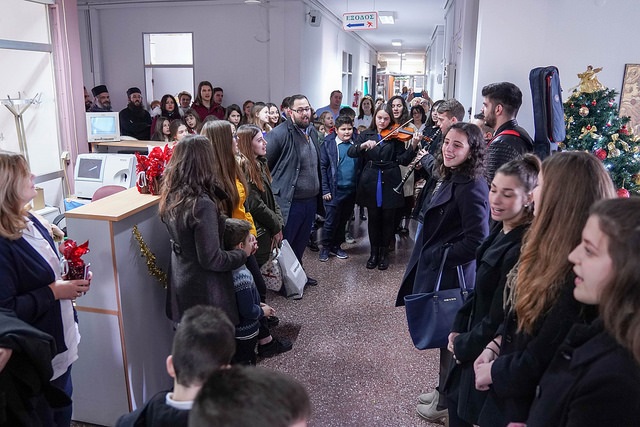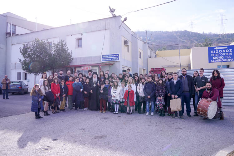Τον Σεβασμιώτατο συνόδευσε μία ομάδα νέων από τις κατηχητικές συνάξεις Αλεξάνδρειας που έψαλλαν τα πρωτοχρονιάτικα κάλαντα και μοίρασαν επίσης δώρα.