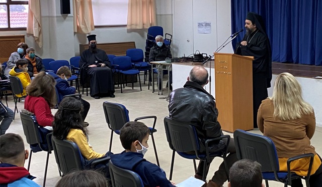 Τέλος ο Σεβασμιώτατος μοίρασε στους μαθητές ευλογίες και τους ευχήθηκε πατρικά.
