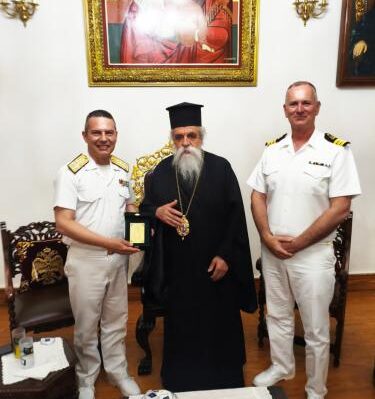 Εθιμοτυπική επίσκεψη πραγματοποιήσαν την Τετάρτη 18 Ιουνίου 2025 στον Σεβασμιωτάτο Μητροπολίτη Ηλείας και Ωλένης κ.κ Αθανάσιο ο Β’ Υπαρχηγός Λιμενικού Σώματος – Ελληνικής Ακτοφυλακής Υποναύαρχος Λ.Σ. Φώτιος Κιάμος με τον Λιμενάρχη Κατάκολου Υποπλοίαρχο Λ.Σ. Γκαντζιό Απόστολο.