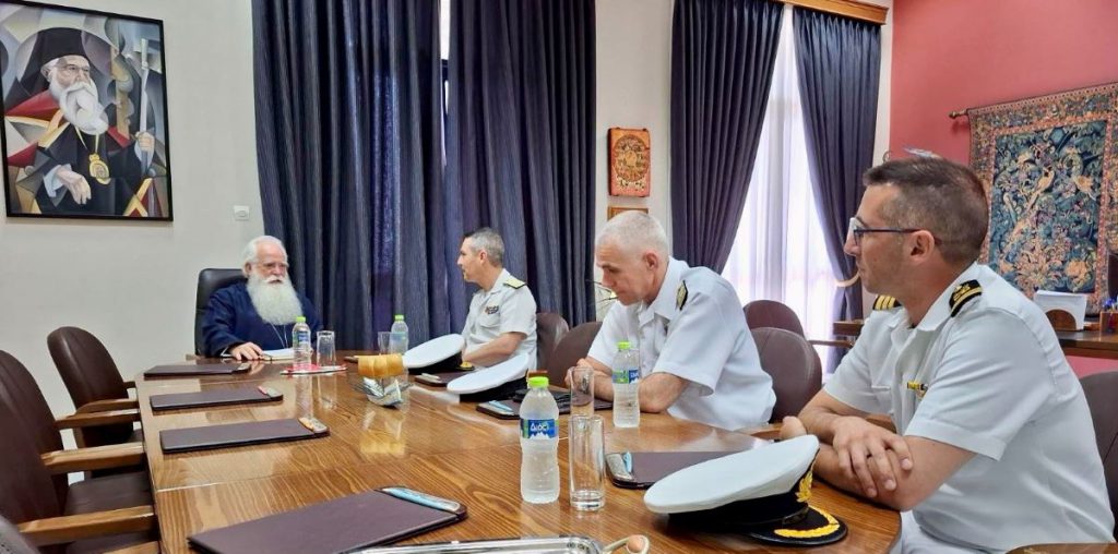 Δόθηκε, επίσης η δυνατότητα στον Σεβασμιώτατο να εκφράσει την εκτίμηση και την ευγνωμοσύνη του στο Λιμενικό Σώμα της Πατρίδας μας, για το έργο του στην διαφύλαξη της ασφαλούς ναυσιπλοΐας στις ελληνικές θάλασσες και τον αγώνα του για την διάσωση ανθρώπων, που πέφτουν θύματα παράνομων κυκλωμάτων διακινητών.