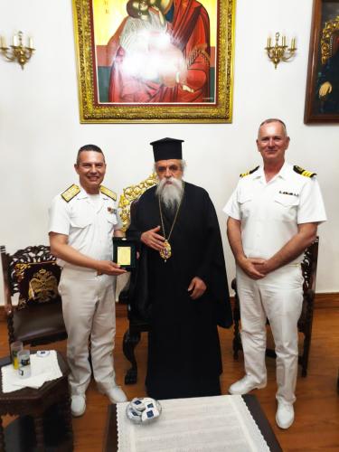 Εθιμοτυπική επίσκεψη πραγματοποιήσαν την Τετάρτη 18 Ιουνίου 2025 στον Σεβασμιωτάτο Μητροπολίτη Ηλείας και Ωλένης κ.κ Αθανάσιο ο Β’ Υπαρχηγός Λιμενικού Σώματος – Ελληνικής Ακτοφυλακής Υποναύαρχος Λ.Σ. Φώτιος Κιάμος με τον Λιμενάρχη Κατάκολου Υποπλοίαρχο Λ.Σ. Γκαντζιό Απόστολο.