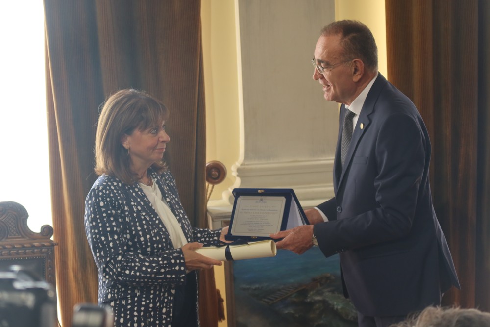 Κατά την αντιφώνησή της, στο Δημαρχιακό Μέγαρο του Δήμου Σύρου-Ερμούπολης, η κ. Σακελλαροπούλου εξέφρασε τη συγκίνησή της για την τιμή να είναι πλέον και εκείνη «μια Συριανή, δημότης της γενέθλιας πόλης του Εμμανουήλ Ροΐδη, του Δημήτριου Βικέλα, του Εμμανουήλ Μπενάκη, του Φαίδωνα Κουκουλέ, και τόσων άλλων από τον μακρύ κατάλογο των διαπρεπών Συριανών, που έφεραν στο προσκήνιο της Ιστορίας και της τέχνης τη γενέτειρά τους».