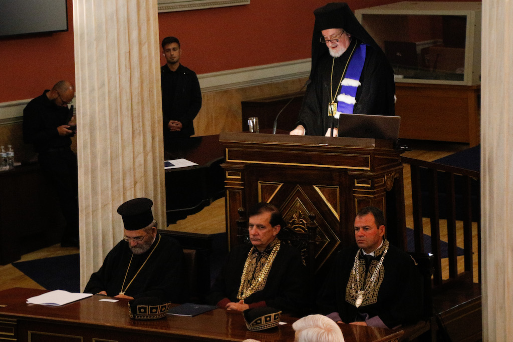 Η εκδήλωση έλαβε χώρα στη Μεγάλη Αίθουσα του Εθνικού και Καποδιστριακού Πανεπιστημίου Αθηνών και παρέστησαν, επίσης, αρκετοί Αρχιερείς της Εκκλησίας της Ελλάδος και του εξωτερικού, πολιτικοί, ακαδημαϊκοί, κλήρος και λαός.