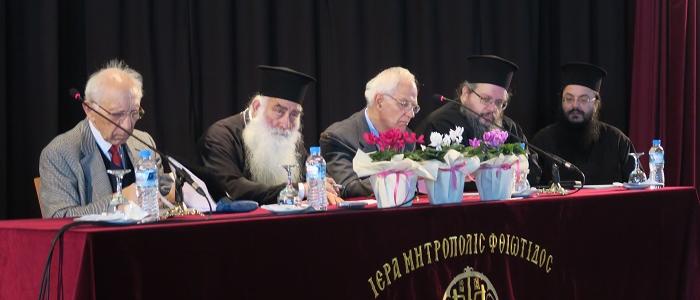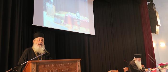 Η Ημερίδα ξεκίνησε τις εργασίες της με την τέλεση της ακολουθίας του Αγιασμού από τόν Προέδρο της Ειδικής Συνοδικής Επιτροπής Σεβασμιώτατο Μητροπολίτη Σισανίου και Σιατίστης κ. Παύλο, ο οποίος αμέσως μετά έλαβε τον λόγο απεθύνοντας σύντομο χαιρετισμό προς τους εκλεκτούς συνέδρους, τους οποίους καλοσώρισε στην εκδήλωση, ευχαρίστησε τους ελλογιμωτάτους ομιλιτές για τον κόπο στον οποίον υπεβλήθησαν, τον Σεβασμιώτατο Μητροπολίτη Φθιώτιδος κ. Νικόλαο για την φιλοξενία που παρέσχε και ολοκλήρωσε με ένα σύντομο περίγραμμα της θεματικής της ημερίδος και των στόχων αυτής.