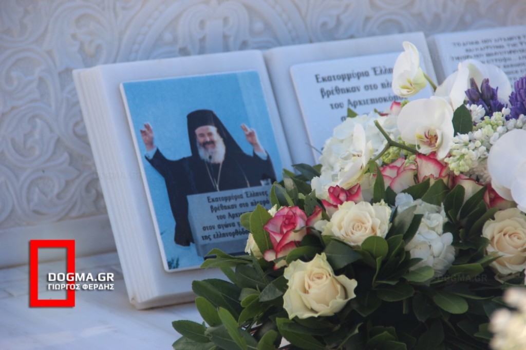 Ο ανθοστόλιστος τάφος του μακαριστού Χριστοδούλου ξεχώριζε από μακριά από την είσοδο του Ά Νεκροταφείου δείχνοντας την αγάπη του κόσμου στον εκλιπόντα Αρχιεπίσκοπο ακόμη και μετά από τόσα χρόνια από την κοίμησή του.