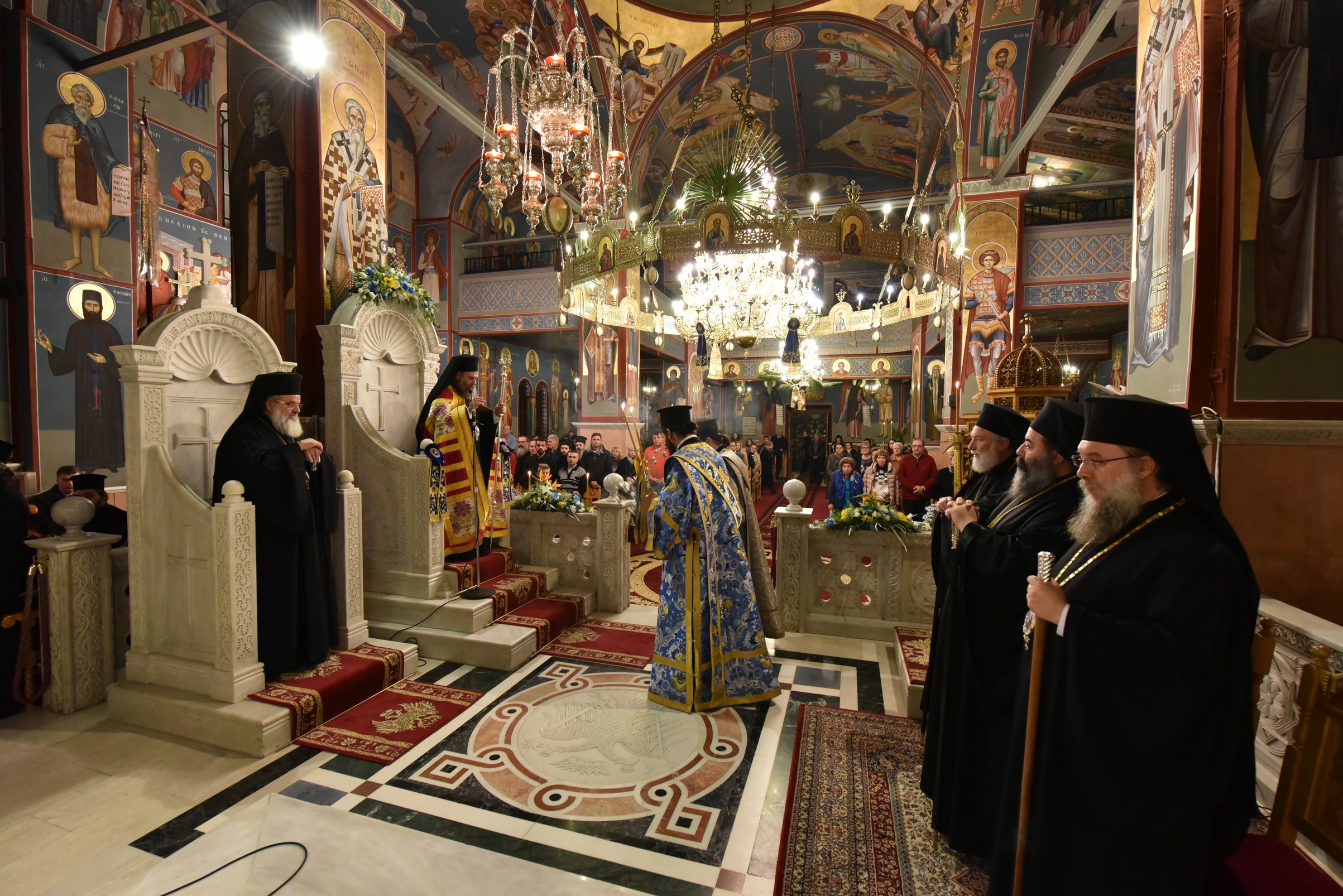 Της Ακολουθίας του Εσπερινού του Αγίου Ιωάννου, χοροστάτησε ο Σεβασμιώτατος Μητροπολίτης Θεσσαλιώτιδος και Φαναριοφαρσάλων κ.κ. Τιμοθέου, συνχοροστατούντων των Σεβασμιωτάτων Μητροπολιτών Βρεσθένης κ.κ. Θεοκλήτου, Κηφισίας, Αμαρουσίου και Ωρωπού κ.κ. Κυρίλλου, Λαγκαδά, Λητής και Ρεντίνης κ.κ. Ιωάννου, του Θεοφιλεστάτου Επισκόπου Θερμών κ.κ. Δημητρίου, ενώ εκ του Ιερού Βήματος παρέστη συμπροσευχόμενος ο Σεβασμιώτατος Μητροπολίτης Νέας Ιωνίας και Φιλαδελφείας κ.κ. Γαβριήλ.