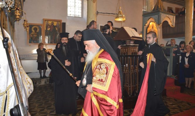 Ο Σεβασμιώτατος, στη σύντομη προσλαλιά του, υπογράμμισε την αξία της συνεργασίας ανάμεσα στην Τοπική Εκκλησία και στην Πολιτεία  «ορατός καρπός της οποίας αποτελεί ο εγκαινιασμός του Βυζαντινού Ιερού Ναού του 12ου αιώνα, της εποχής των Κομνηνών».
