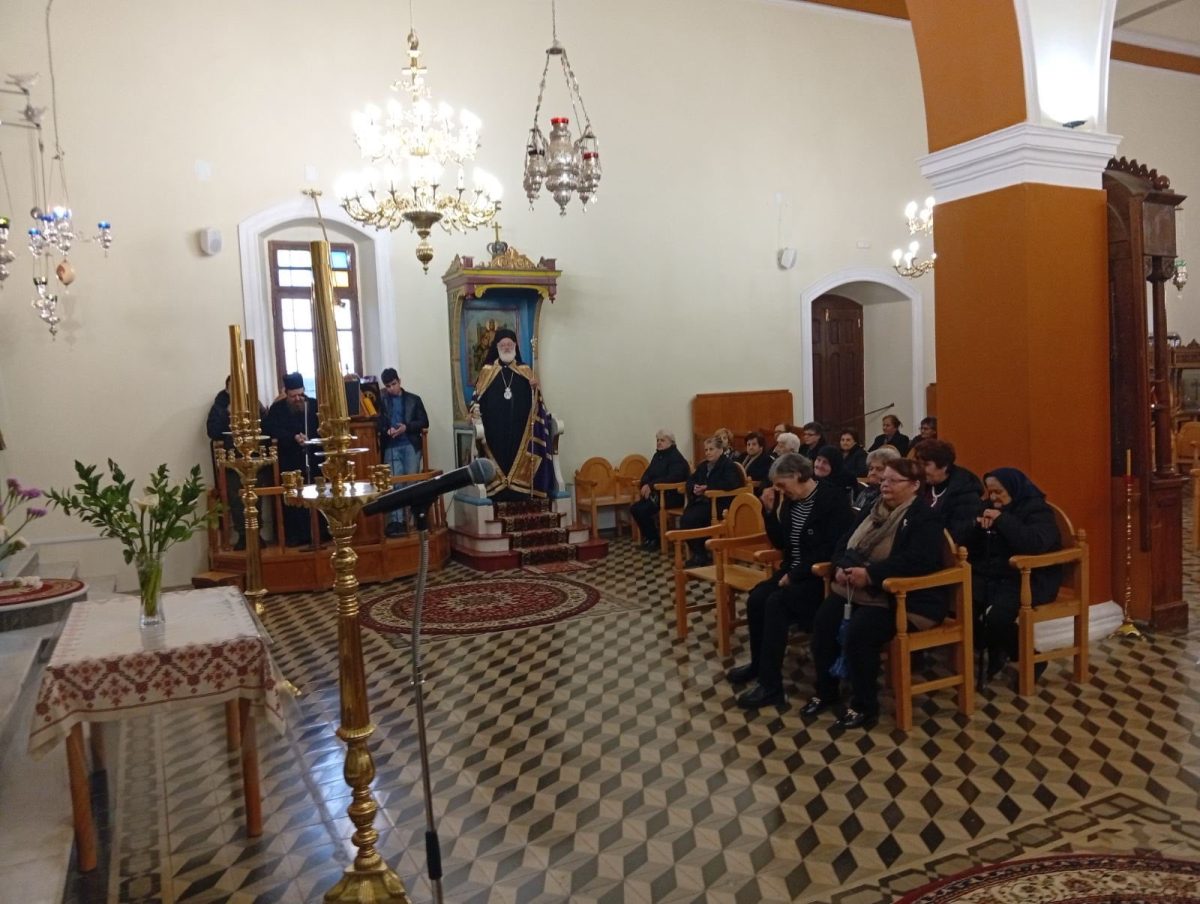 Την Τρίτη 24 Μαρτίου, παραμονή της εορτής του Ευαγγελισμού της Θεοτόκου, ο Σεβασμιώτατος Ποιμενάρχης μας κ. Ανδρεας μετέβη στον Ιερό Ναό Τιμίου Σταυρού στο Θραψανό Πεδιάδος, του οποίου το αριστερό κλίτος εορτάζει. Ο Σεβασμιώτατος, χοροστάτησε του πανηγυρικού Εσπερινού και ευλόγησε τους προσφερόμενους άρτους. Στο κήρυγμά του αναφέρθηκε στο ιερό πρόσωπο της Υπεραγίας Θεοτόκου, ενώ τόνισε τη διπλή εορταστική σημασία της ημέρας, όπου η Παναγία μας, η Υπέρμαχος Στρατηγός του Γένους διαφύλαξε την πατρίδα μας.