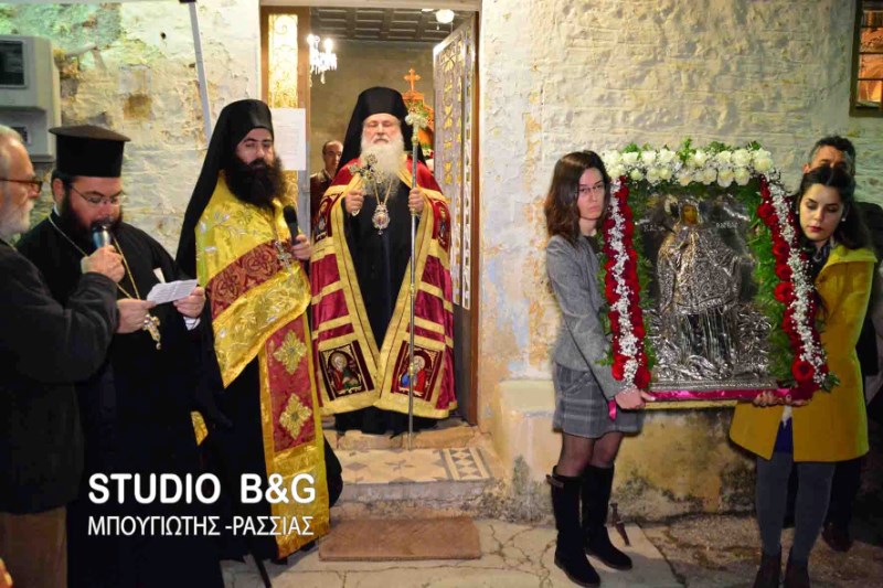 Τον πανηγυρικό εσπερινό τέλεσε ο μητροπολίτης Θηβαΐδος, κ. Πορφύριος από το Πατριαρχείο Αλεξανδρείας, ο οποίος είναι γέννημα και θρέμμα του Αργολικού κάμπου.