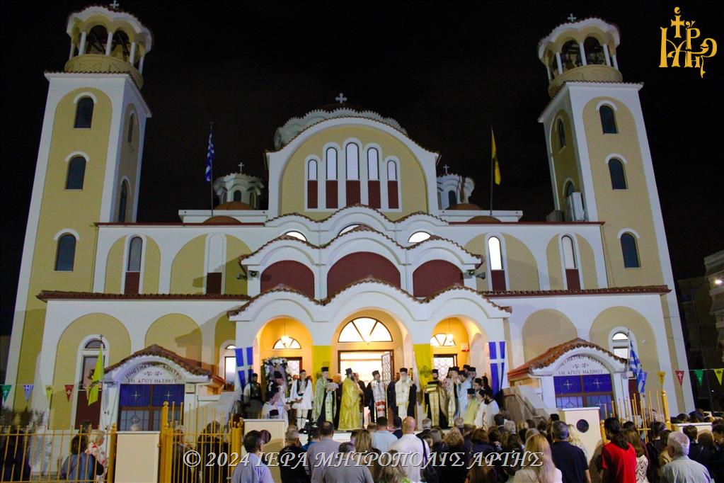 Στο πέρας του Εσπερινού, ελιτανεύθησαν τα Τίμια Λείψανα του Αγίου Μαξίμου του Γραικού, καθώς και του Οσίου Δαυίδ του Γέροντος στην πέριξ του Ιερού Ναού περιοχή του Τριγώνου Άρτης.
