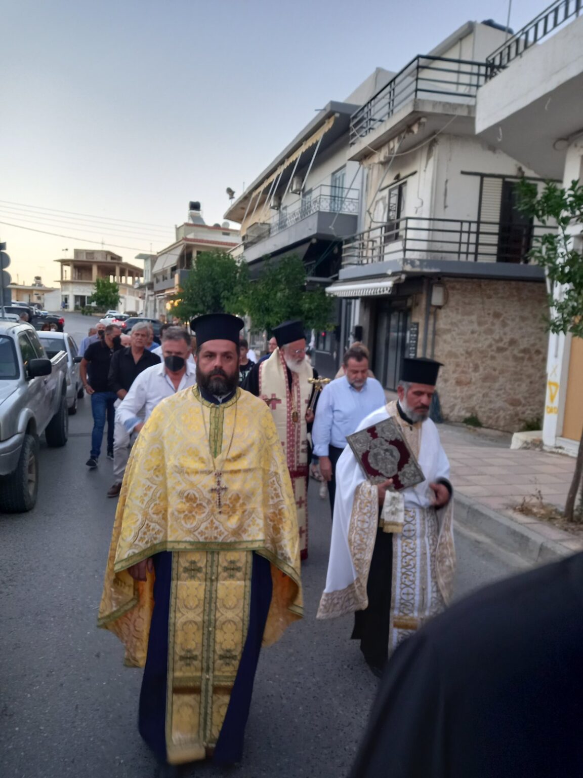 Στην ακολουθία του Εσπερινού έλαβαν μέρος οι Πρωτοπρεσβύτεροι Πέτρος Ψυλλάκης, ο Δημήτριος Πάγκαλος Προϊστάμενος του Ναού, Σπυρίδων Φουκαράκης Αναπλ. Γενικός Αρχιερατικός Επίτροπος, ο Πρεσβύτερος Κωνσταντίνος Αρμενάκης και ο Αρχιδιάκονος Μαρίνος Δασκαλάκης ενώ το ιερό αναλόγιο διακόνησε ο Οικονόμος Ιωάννης Καπελλάκης και ο Διάκονος Πέτρος Αράπογλου. Τέλος, τελέσθηκε τρισάγιο στον μακαριστό Πρεσβύτερο Χαράλαμπο Κριτσωτάκη όπου ήταν επί πολλά χρόνια εφημέριος του Ιερού Καθεδρικού Ναού Αρκαλοχωρίου. Προ της απολύσεως διαβάστηκε η ευχή για την ευλόγηση των σταφυλιών. Μεταξύ άλλων παρέστησαν ο Δήμαρχος Μινώα Πεδιάδας κ.Μανόλης Φραγκάκης, ο Βουλευτής Ηρακλείου κ.Βασίλης Κεγκέρογλου και αντιδημάρχοι του Δήμου.