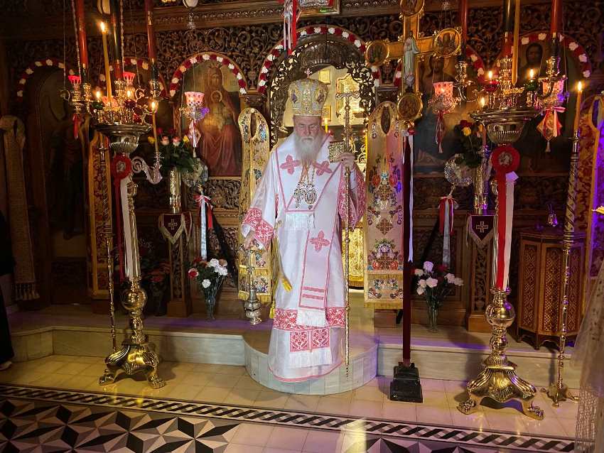 Προ της Απολύσεως ο Ιεροκήρυξ π. Άνθιμος ανέγνωσε την Πασχαλινή Ποιμαντορική Εγκύκλιο του Ποιμενάρχου μας ενώ ο Σεβασμιώτατος στην σύντομη προσλαλιά του κάλεσε τους πιστούς να μην παύσουν να προσεύχονται στον Αναστάντα Κύριό μας να φωτίζει τους ηγήτορες της Χώρας μας αλλά και όλους εμάς, ώστε «εν καινότητι ζωής περιπατήσωμεν».