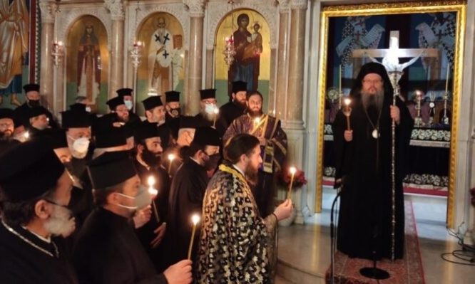 Ο Ποιμενάρχης μας στο κήρυγμά του μίλησε για τη συγχωρητηκότητα. Προ της απολύσεως του Εσπερινού ο Σεβασμιώτατος διάβασε τις δύο Συγχωρητικές Ευχές, ενώ στο τέλος κλήρος και λαός προσκύνησαν τον Τίμιο Σταυρό ώστε με τη δύναμη του να διαπλεύσουν το μέγα πέλαγος της νηστείας.