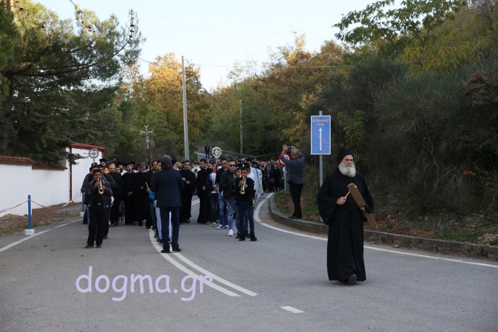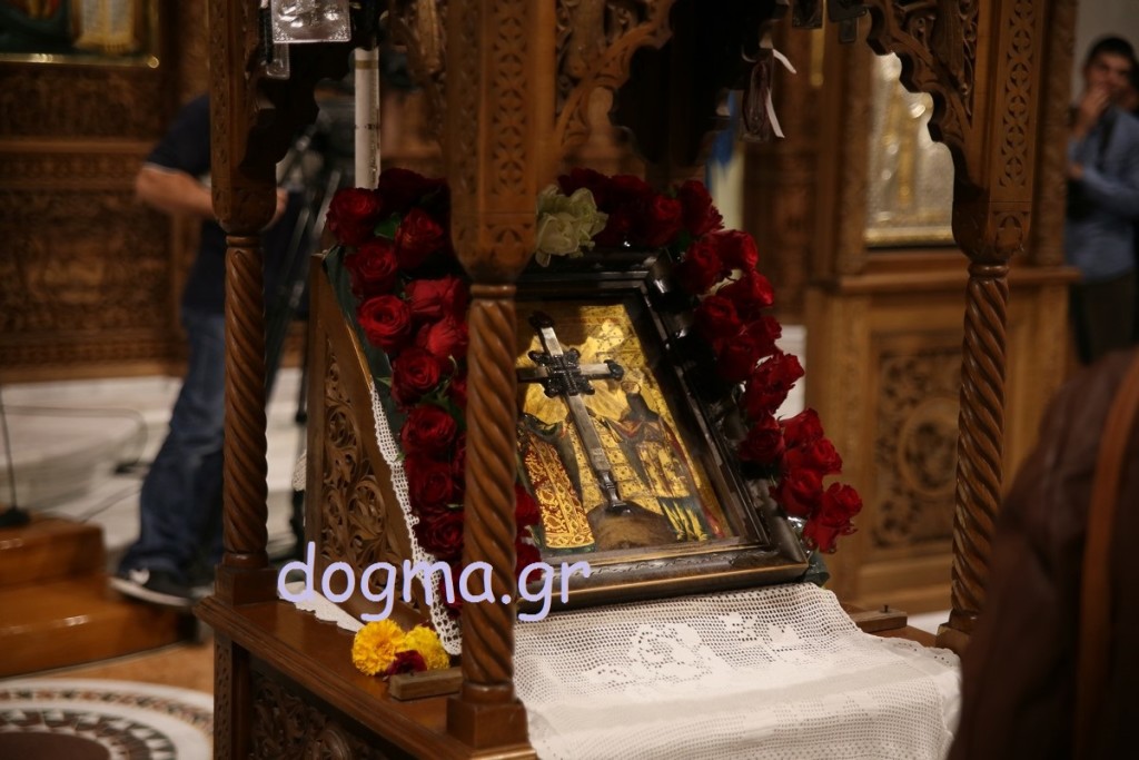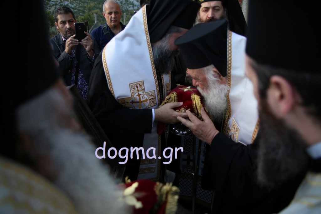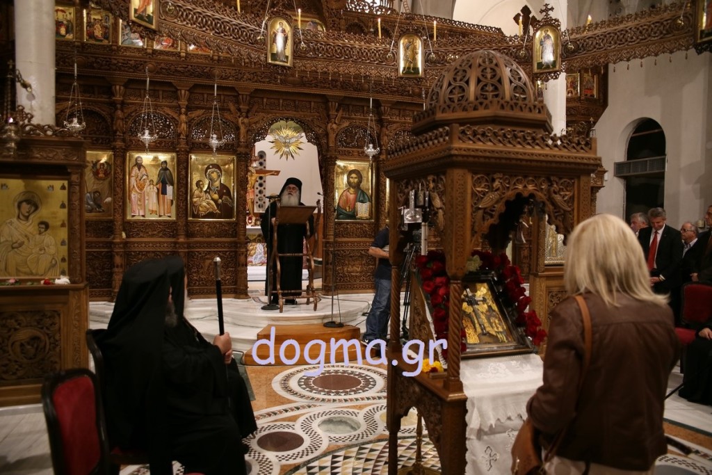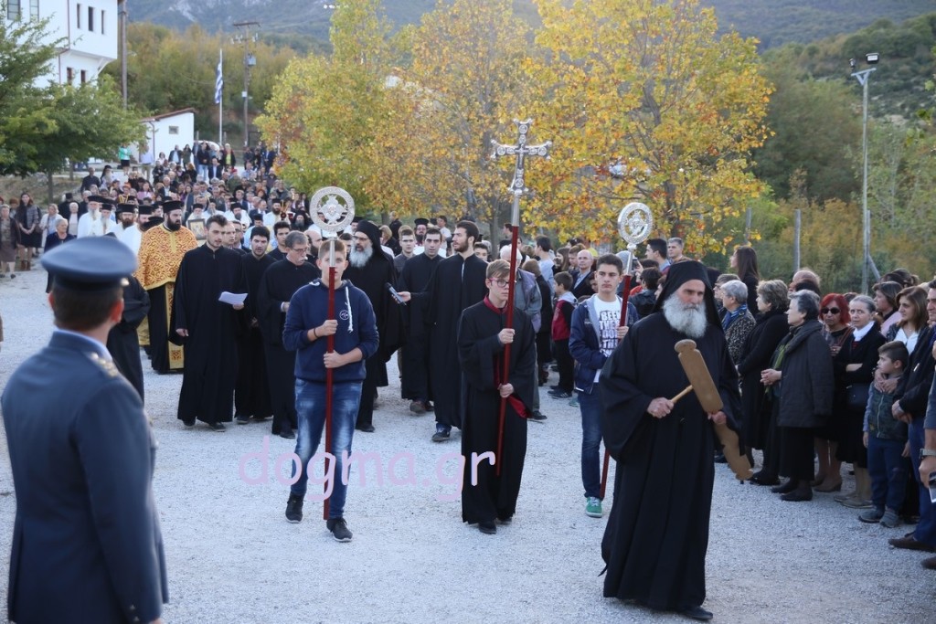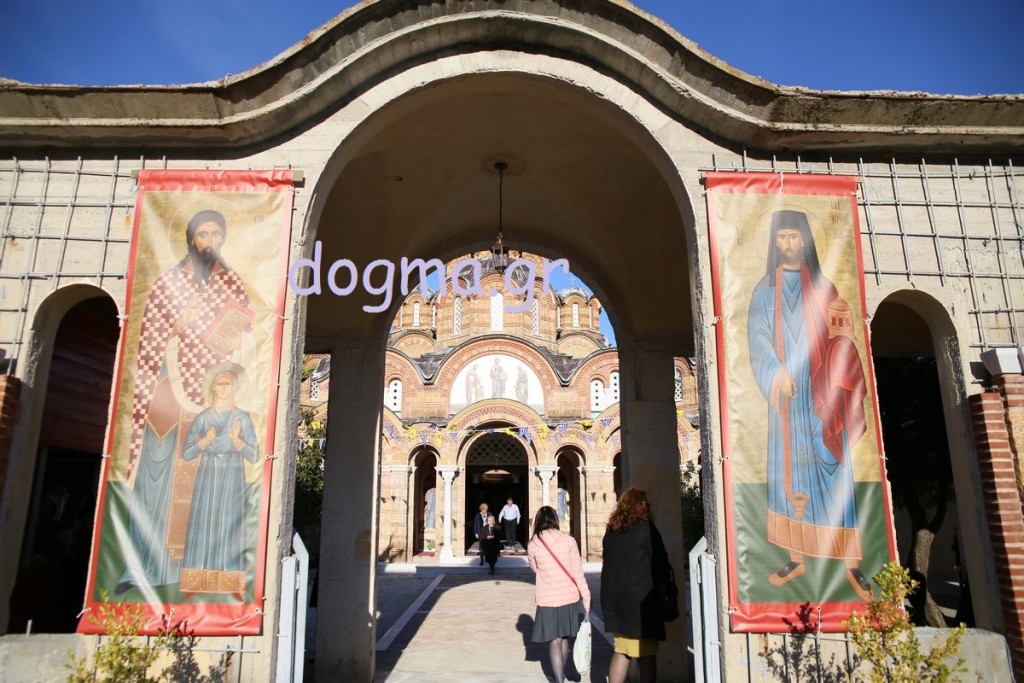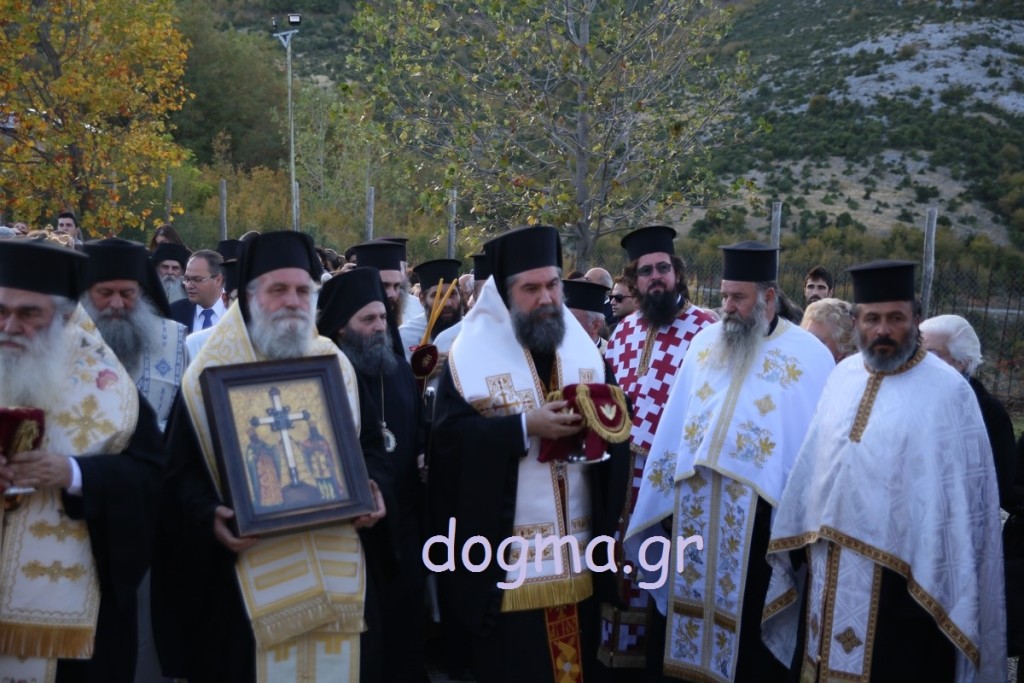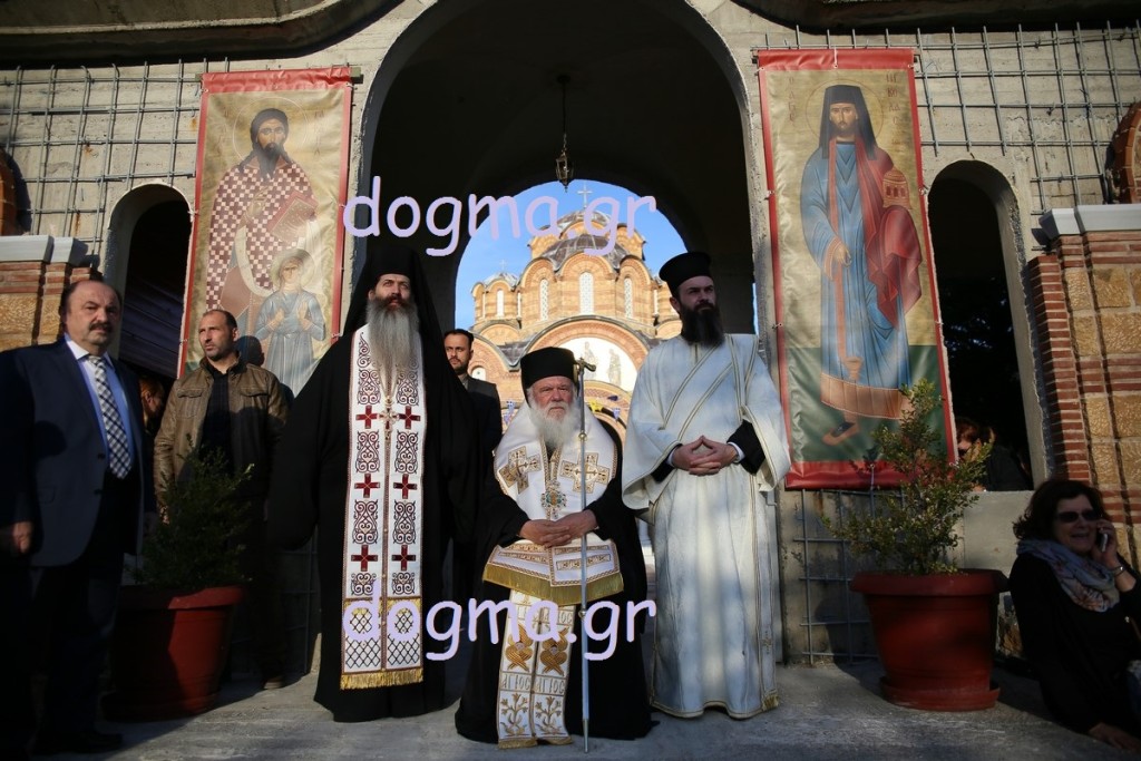 Το απόγευμα ο Αρχιεπίσκοπος χοροστάτησε στον εσπερινό των εγκαινίων, ενώ συγχοροστάτησαν οι Μητροπολίτες Καπιτώλιαδος κ. Ησύχιος, Εδέσσης, Πέλλης και Αλμωπίας κ. Ιωήλ, Ιωαννίνων κ. Μάξιμος, Γρεβενών κ. Δαβίδ και ο Μητροπολίτης Γουμενίσσης, Αξιουπόλεως και Πολυκάστρου κ. Δημήτριος. Πριν τον εσπερινό πραγματοποιήθηκε, έξω από τη Μονή, η επίσημη υποδοχή του Τιμίου Ξύλου και των Ιερών Λειψάνων των Αγίων, όπου παρέστησαν επίσης, ο Μητροπολίτης Σερρών και Νιγρίτης κ. Θεολόγος, εκπρόσωποι της πολιτείας, των τοπικών αρχών, συλλόγων και φορέων. Κατόπιν με πομπή και την συνοδεία των χάλκινων της Γουμένισσας κατευθύνθηκαν προς το καθολικό της Μονής, όπου πραγματοποιήθηκε η υποδοχή από τον Αρχιεπίσκοπο. Ο Μητροπολίτης Γουμενίσσης ευχαρίστησε τον Αρχιεπίσκοπο, τους Αρχιερείς, κλήρο και λαό και αναφέρθηκε στον θαυμαστό τρόπο που βρέθηκε ο χώρος και χτίστηκε η μονή. Μίλησε, επίσης, για τα θαύματα που μαρτυρούνται αρκετά συχνά και έκανε λόγο για την πνευματική προσφορά της Εκκλησίας και για την αγάπη που δίνει σε όλους ανεξαιρέτως και δικαίως. Στη συνέχεια ο Αρχιεπίσκοπος ευχαρίστησε τον Μητροπολίτη Γουμενίσσης για την πρόσκληση και ευχήθηκε σε όλους να έχουν την ευλογία του Θεού και των Αγίων.