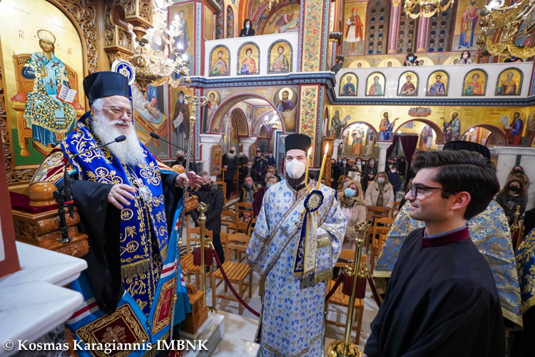 Στο τέλος του Πανηγυρικού Εσπερινού ο Σεβασμιώτατος Μητροπολίτης μας κ. Παντελεήμων χειροθέτησε Αναγνώστη τον κ. Χρήστο Ζερδαλή και ευλόγησε τη βασιλόπιτα της ενορίας.