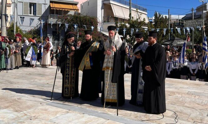 Ανήμερα της Εθνικής Επετείου, Τρίτη 28 Οκτωβρίου 2025, ο Σεβασμιώτατος Μητροπολίτης Νέας Ιωνίας, Φιλαδελφείας, Ηρακλείου και Χαλκηδόνος κ. Γαβριήλ προέστη της επίσημης Δοξολογίας για το Έπος του 1940 στον Ιερό Καθεδρικό Ναό Αγίας Ευφημίας, παρουσία του Δημάρχου Ν. Φιλαδέλφειας- Ν. Χαλκηδόνας κ. Ιωάννη Τομπούλογλου, Αντιδημάρχων, Μελών των Κοινοτικών και του Δημοτικού Συμβουλίου του Δήμου, στρατιωτικών και αστυνομικών αρχών, προέδρων και εκπροσώπων τοπικών προσφυγικών σωματείων, εκπαιδευτικών και μαθητών σχολείων.