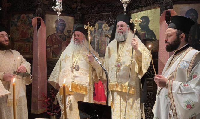 Μαζί τους συλλειτούργησε και ο Καθηγούμενος της Ιεράς Μονής Αγίου Βησσαρίωνος Δουσίκου Πανοσιολογιώτατος Αρχιμανδρίτης Βησσαρίων.