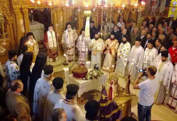 Προηγουμένως τελέστηκε πολυαρχιερατικό συλλείτουργο προεξάρχοντος του Αρχιεπισκόπου Κρήτης κ. Ειρηναίου και συλλειτουργούντων των μητροπολιτών Λάμπης κ. Ειρηναίου, Αρκαλοχωρίου κ. Ανδρέα, Ρεθύμνης κ. Ευγενείου, Κισάμου κ. Αμφιλοχίου και Κυδωνίας κ. Δαμασκηνού.