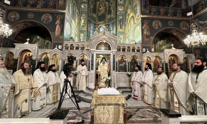 Εν συνεχεία τελέστηκε επιμνημόσυνη δέηση για την συμπλήρωση ενός έτους από της κοιμήσεως των βιαίως κοιμηθέντων αδελφών μας στο σιδηροδρομικό δυστύχημα των Τεμπών.