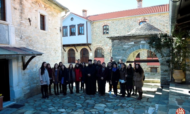 Οι φοιτητές επισκέφθηκαν την ιστορική Μονή Γενεθλίου Θεοτόκου Κανάλων, όπου γεύθηκαν τη μοναστηριακή ζεστασιά και φιλοξενία από τις αδελφές. Προσκύνησαν στο Καθολικό και εν συνεχεία στο γραφικό Παρεκκλήσιο του Αγίου Δημητρίου, όπου η υπεύθυνη Μοναχή ομίλησε στους νέους για την ιστορία της Μονής. Κατόπιν οδηγήθηκαν στο αρχονταρίκι όπου και έλαβαν κέρασμα και ενθύμια. Επόμενος προορισμός ήταν το όμορφο χωριό Καρυά Ολύμπου. Εκεί είχαν την ιδιαίτερη ευκαιρία να προσκυνήσουν την Κάρα του Ιερομάρτυρος Αγίου Ελευθερίου, που φυλάσσεται στον Ενοριακό Ναό ως πολύτομος θησαυρός, μαζί και με άλλα άγια λείψανα. Ο εφημέριος της ενορίας π. Ιωάννης Δραχαλίβας, υποδέχθηκε με θέρμη τους νέους προς τους οποίους μίλησε κατάλληλα και διηγήθηκε το ιστορικό της έλευσης της Αγίας Κάρας στην ενορία τους, την οποία τα παιδιά ασπάσθηκαν συγκινημένα καθώς μάλιστα ευωδίαζε. Κατόπιν η ομάδα των νέων μετέβη σε εστιατόριο της περιοχής όπου γευμάτησαν και ψυχαγωγήθηκαν. Ο Σεβασμιώτατος Μητροπολίτης Κίτρους κ. Γεώργιος έδωσε σε όλα τα παιδιά τις πατρικές ευχές του για το νέο έτος καθώς βεβαίως και για την εξεταστική περίοδο που σε λίγες ημέρες αρχίζει. Πριν την επιστροφή τους στην Κατερίνη οι νέοι έκαναν στάση στο Λιτόχωρο, όπου και συμμετείχαν με μικρό θεατρικό σε εόρτια εκδήλωση του Γραφείου Νεότητας.