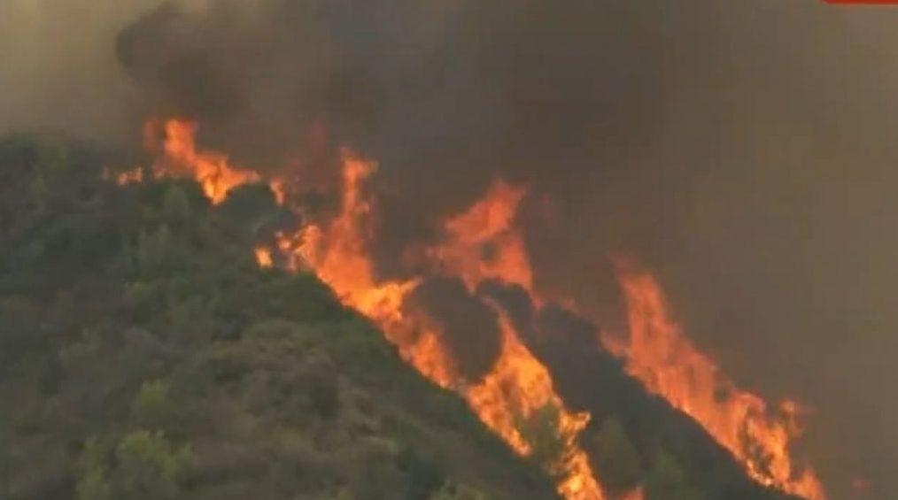 Οι ισχυροί άνεμοι που πνέουν στην περιοχή κάνουν πολύ δύσκολο το έργο των πυροσβεστικών δυνάμεων, ενώ τρεις πυροσβέστες έχουν τραυματιστεί.
