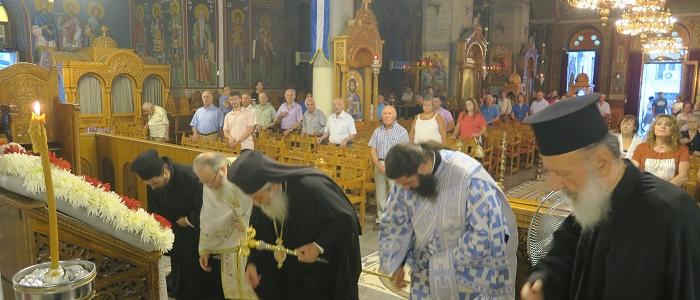 Η πρώτη ιερά παράκληση τελέσθηκε την Τρίτη 1 Αυγούστου, με κατάνυξη και ιδιαίτερο σεβασμό στον Ιερό Μητροπολιτικό Ναό Ευαγγελισμού της Θεοτόκου Λαμίας, στην οποία χοροστάτησε και ωμίλησε ο Σεβασμιώτατος Μητροπολίτης Φθιώτιδος κ. Νικόλαος.