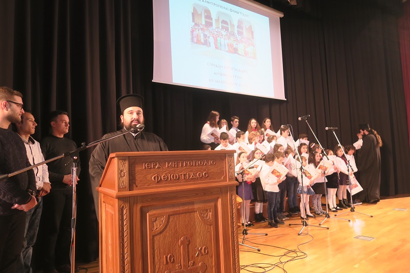 Τα παιδιά καλωσόρισε με θερμά λόγια ο Ποιμενάρχης Φθιώτιδος και τα ευχαρίστησε που ανταποκρίθηκαν στην πρόσκλησή του καθώς συνεχάρη και τους ιερείς που τα προέτρεψαν και τα οδήγησαν στο Αμφιθέατρο.