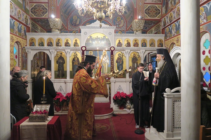 Κατά την διάρκεια της Θείας Λειτουργίας ετέθη προς προσκύνηση και αγιασμό των πιστών απότμημα του Ιερού Λειψάνου του Αγίου Εφραίμ, το οποίο εδώρησε στον Σεβασμιώτατο Ποιμενάρχη μας η μακαριστή Ηγουμένη της Ιεράς Μονής του Οσίου Εφραίμ, Μοναχή Μακαρία Δεσύπρη.