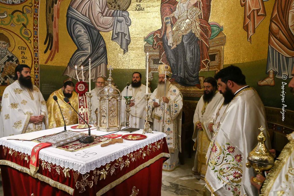 Σεβασμιώτατε, περαίνοντας τον λόγο μου, επιτρέψτε μου υιικὰ και απ’ τα βάθη της καρδιάς μου και εκ μέρους της Ιεράς αδελφότητος να σας ευχαριστήσω για την σημερινή σας επιστηρικτική και αγιαστική παρουσία η οποία μας ενθαρρύνει ψυχικά και μας αναζωογονεί πνευματικά και να εκφράσω την βαθύτατη ευγνωμοσύνη μας για την πατρική σας μέριμνα και αγάπη για την μονή μας.