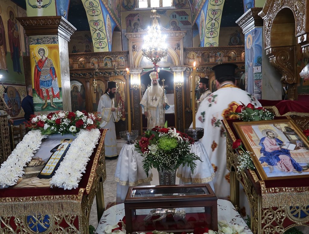 Εκ μέρους όλου του πληρώματος της Ενορίας, ο Προϊστάμενος – Εφημέριος του Ναού π. Νικόλαος Λύτας προσεφώνησε και ευχαρίστησε εγκαρδίως τον κ. Συμεών για την ευλογητή παρουσία του στο Ναό και για την αγιαστική παρουσία των Ιερών Κειμηλίων στο Ναό, το απότμημα της Τιμίας Χειρός του Ευαγγελιστού Λουκά και της Ιεράς Εικόνος, καθώς και της Ιεράς Εικόνος του Οσίου Βησσαρίωνος του Αγαθωνίτου, ο οποίος και από αυτή την Ενορία είχε διέλθει «εὐεργετῶν καὶ ἰώμενος» λιτανεύοντας την Ιερά Εικόνα της Παναγίας της Αγαθωνίτισσας, εξομολογώντας και αναπαύοντας τους πιστούς του χωριού και της ευρύτερης περιοχής.