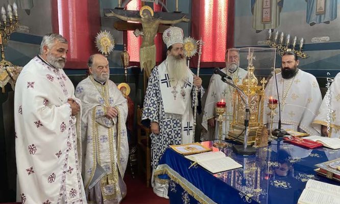Στην Δυτική Φθιώτιδα και στον Ιερό Ναό του Αγίου Γεωργίου Μακρακώμης ιερούργησε σήμερα, Κυριακή 30 Οκτωβρίου 2022 ο Σεβασμιώτατος Μητροπολίτης Φθιώτιδος κ. Συμεών, τελευταία μάλιστα ημέρα της 2ης Παμφθιωτικής Λιτανείας, η οποία πραγματοποιείται καθ΄όλο το μήνα Οκτώβριο σε διάφορα σημεία της Φθιωτικής γης, υπό τον τίτλο: «Λιτανεύοντας τον Ευαγγελιστή της χαράς 2022».
