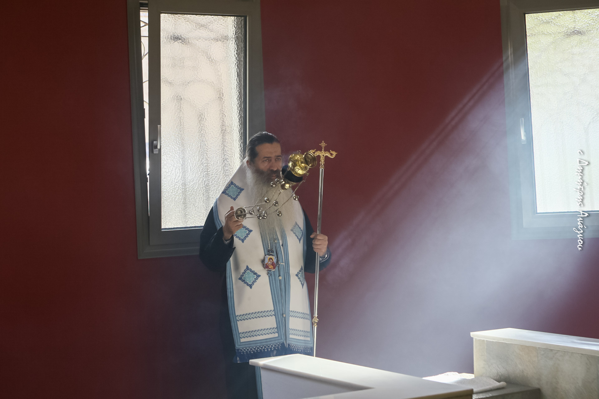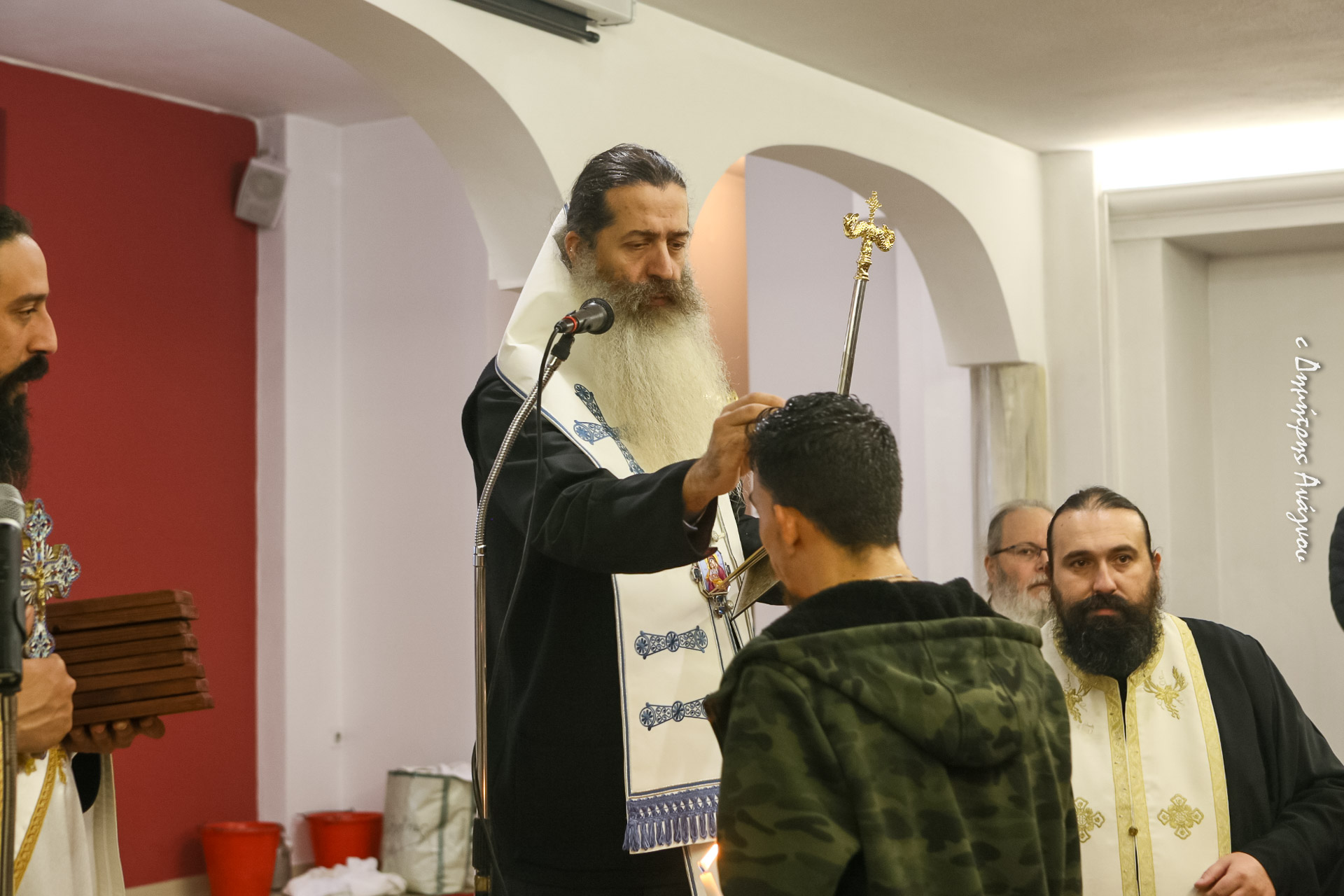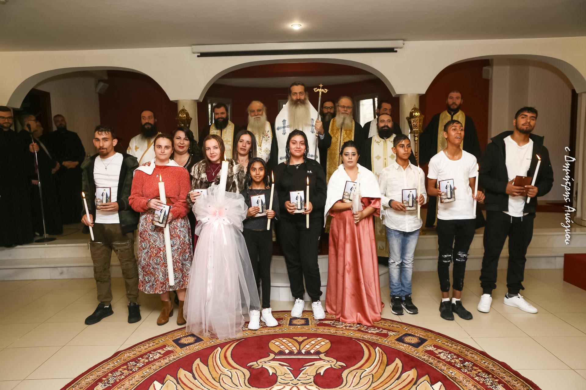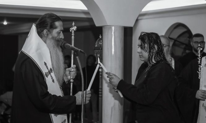 Στα μυστήρια, τα οποία τελέστηκαν στο Ιερό Βαπτιστήριο του Αγίου Ιερομάρτυρος Γρηγορίου, Μητροπολίτου Νέων Πατρών, στην Αγία Παρασκευή Νέας Άμπλιανης, χοροστάτησε ο κ. Συμεών.