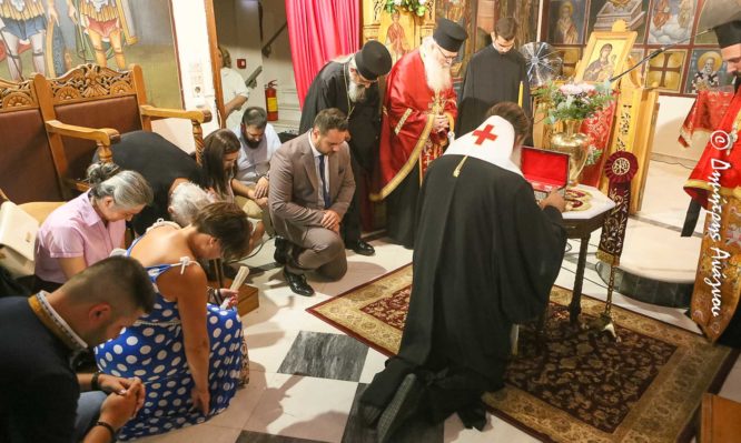 Ο Άγιος Παντελεήμων είναι πρότυπο θυσίας και προσφοράς, Να τον παρακαλέσουμε θερμά και τώρα που θα τον λιτανεύσουμε εδώ στο χωριό, να παρακαλέσουμε στην προσευχή μας ιδιαίτερα για αυτήν την απειλή της φωτιάς όχι μόνο για την περιοχή μας για όλη την πατρίδα μας και για όλο τον κόσμο. Ποτέ μη σκεφτόμαστε μην έρθει το κακό στο σπίτι μας. Είναι πολύ λάθος αυτή η νοοτροπία. Όλος ο κόσμος είναι σπίτι μας και ό,τι κακό βρίσκει τον αδελφό μας, είναι κακό και για εμάς».